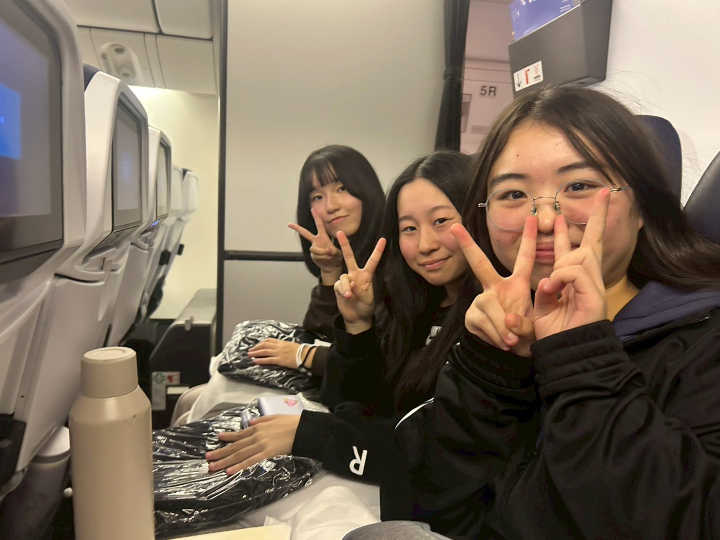 一般の人にまじって各自シャトルバスで移動、集合・点呼。再度顔を合わせた生徒たちは飛行機での時間の過ごし方を楽しそうに話していました。