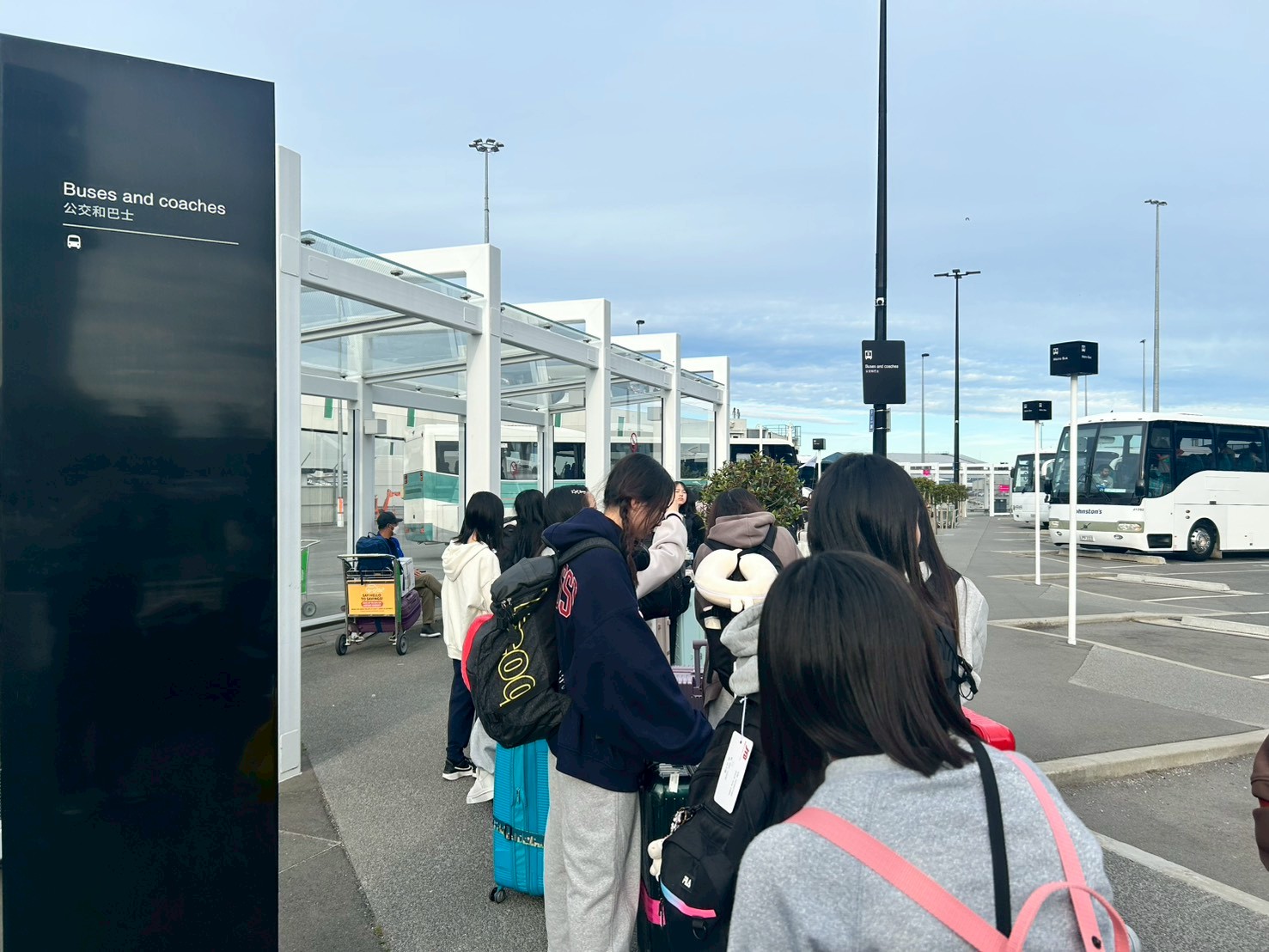 オークランド国際空港からクライストチャーチに無事トラブルなくフライト。ロングフライトを経験した身からすると、今回のフライトはほんの短時間のようでした。長旅を終え、ついに33回生全員体調不良なくクライストチャーチ空港に到着!何度も今回の研修に向けて話をしてくださったNZSCのスタッフの方々との対面を喜びます。