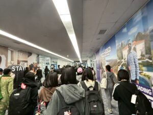 オークランドに到着した後でも入国の手続きが続きます。教員から離れて、自分たちで英語で係員さんとやり取りすることに対して緊張感のある雰囲気が…。しかし、係員さんが話す英語に耳を傾けながら一つ一つのゲートをクリアしていく後ろ姿はとても頼しかったです。