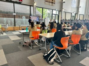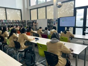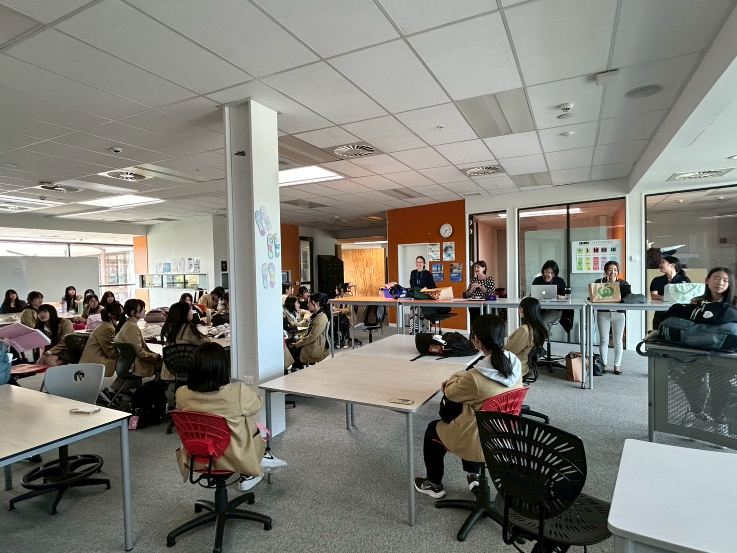 あっという間に授業が終わって今回はロールストンカレッジの広いオープンな教室のスペースを使用してSHR。
