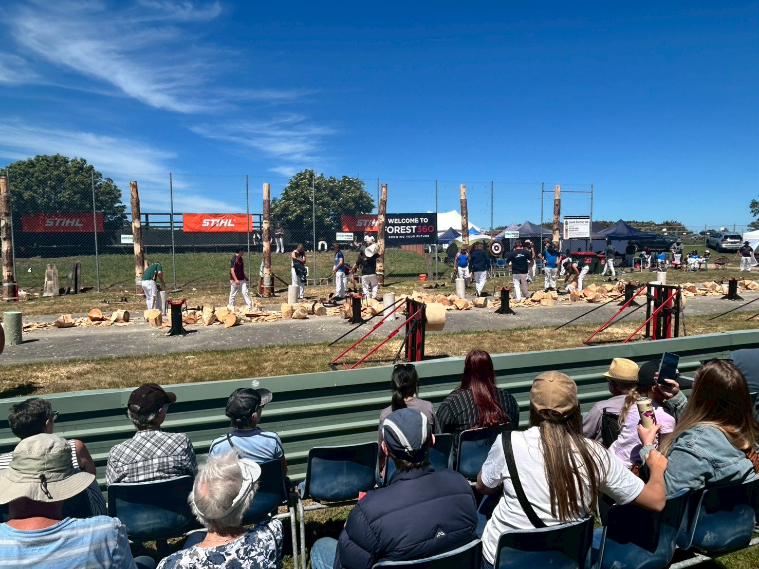 ショーはたくさんあって、丸太を斧やチェーンソーで割る競争、ダートバイクのレース、馬の競走など。