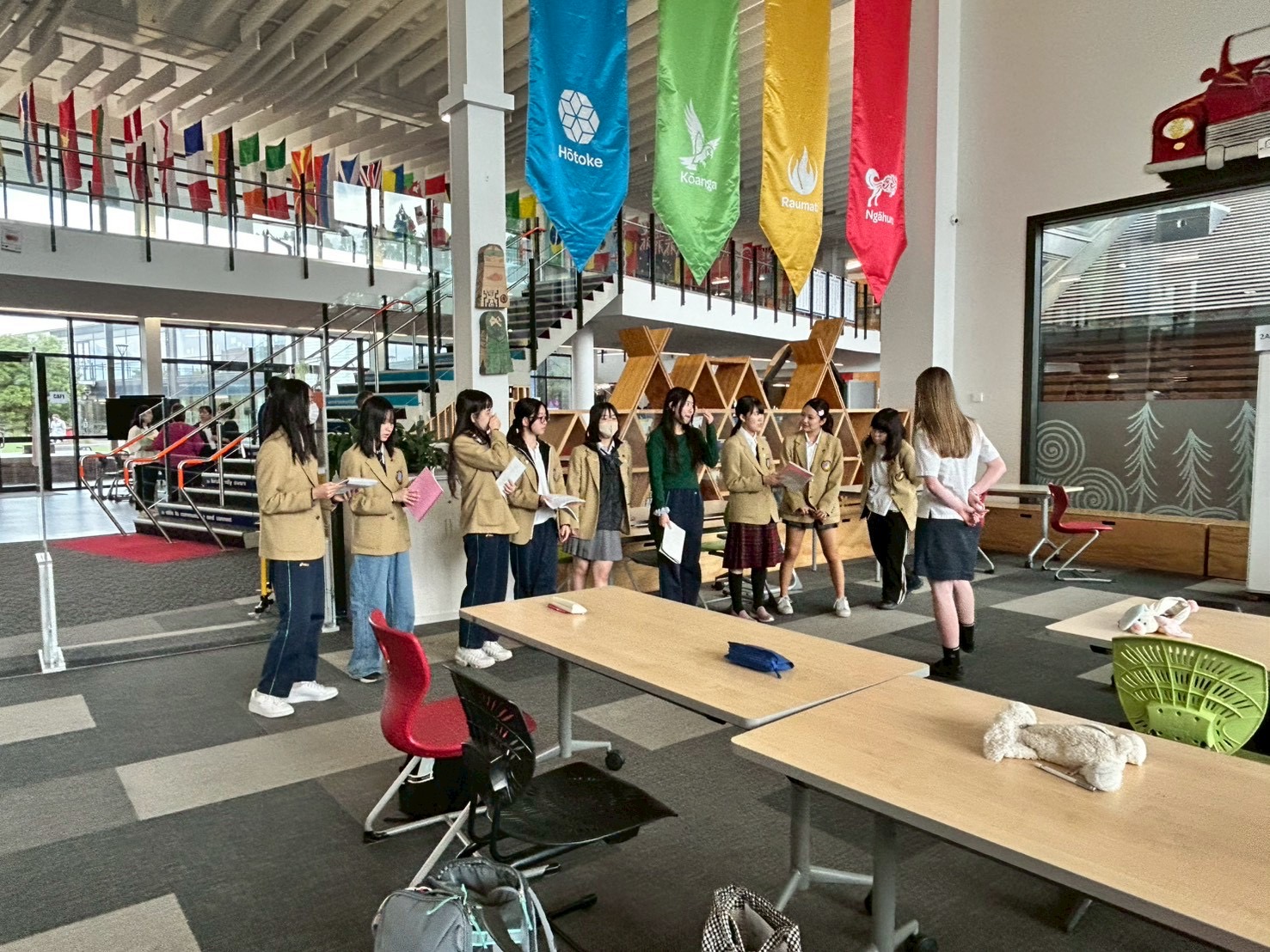 本日はSHR前に修了式のパーティで披露するソーラン節の練習にも励みました。ダンスリーダーが取り仕切って広場の足元やスペースを確認。出来具合を皆で反省して「次の練習を大事にしよう!」と生徒たちの声。日本から持って来たものをただ見せるのではなく、NZでの経験や感謝の想いを乗せて披露できたら絶対に良いパフォーマンスになります!ソーラン節の音源を聞き、「日本を感じる!」と友達同士でちょっぴり母国に思いを馳せながら本日のプログラムは終了しました。