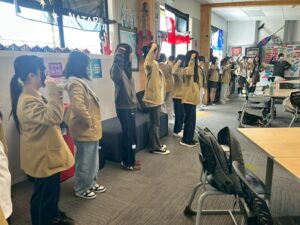 朝の図書館のSHRでは二週目に差し掛かったこのタイミングで、少し「慣れ」が出始めていないかと引率教員より話がありました。日本での生活と同様、日々の生活においては日常の行為の全てが当たり前のように感じられます。しかし、朝昼晩とご飯を食べて、夜はお風呂に入り、好きな服を着て元気に登校できるのも温かいファミリーの存在があるから。そして、ホストファミリーだけでなく、目の前の一つ一つの物事や他者に対して感謝のthank youを忘れないでおこうと改めて全員で共有。