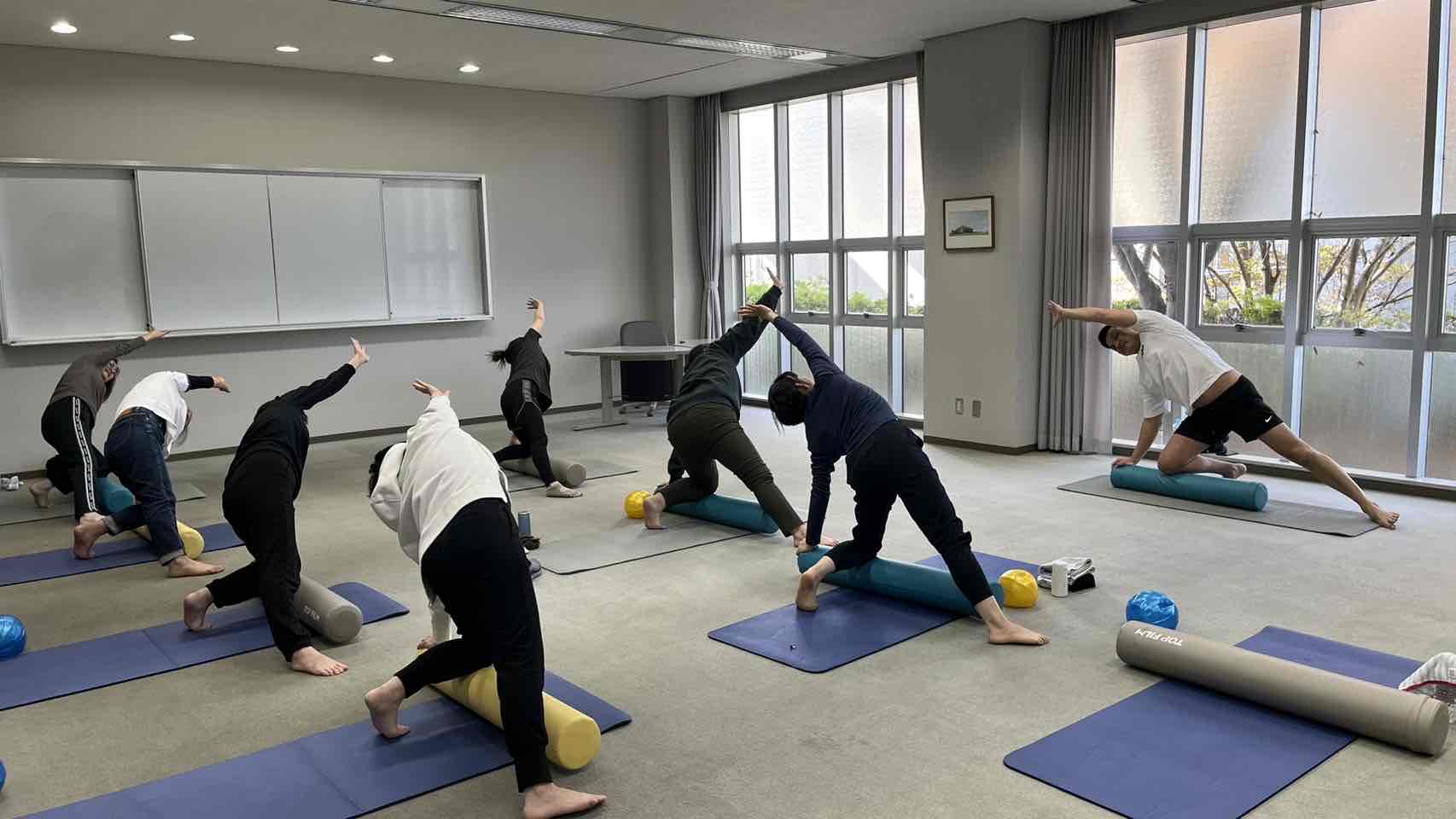 最初は難しそうにされていた方も段々と動きが出来る様になり、深い呼吸に合わせて体を動かすことで、体の内側からじんわり温まる感覚を味わいました。