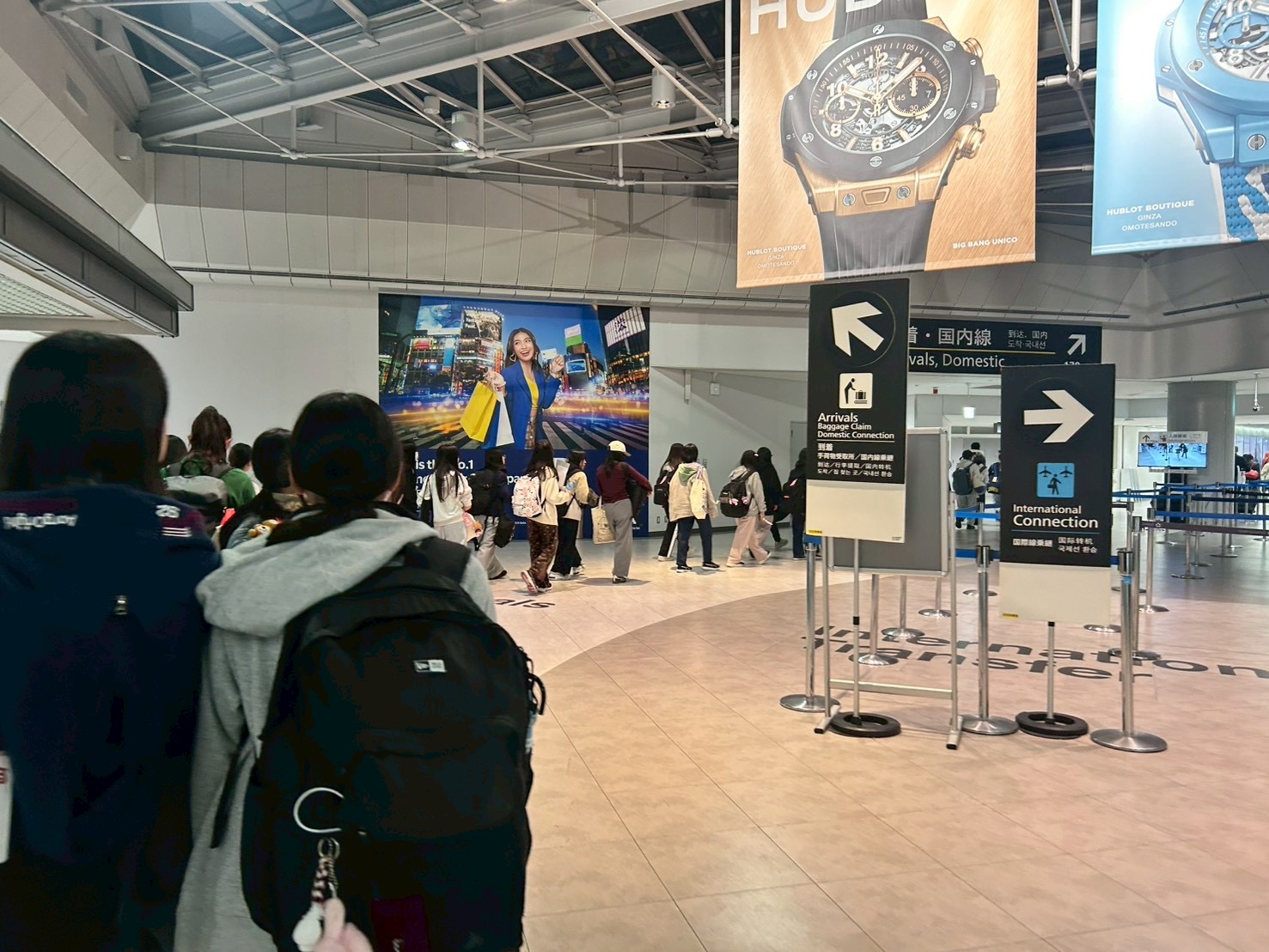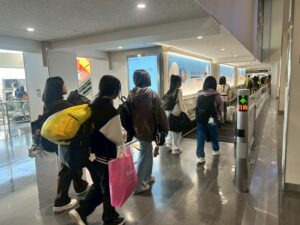 ロングフライトの終盤、成田空港に着陸態勢に入って日本の地が窓から見えると帰ってきた!とテンションが上がる生徒たち。日本でまず何がしたいか・食べたいかというお馴染みの会話が楽しくて仕方がない様子です。飛行機から降りた後は漢字の案内板、任天堂のキャラクターのマリオの看板があちこちに掲示されており、安心感を覚えている表情。しかし、外を見るとまだ17時なのに外は日が沈んで暗い景色…。NZだったら9時まで明るいのに!とどこかまだ帰国の実感が湧かない顔も見せてくれました。