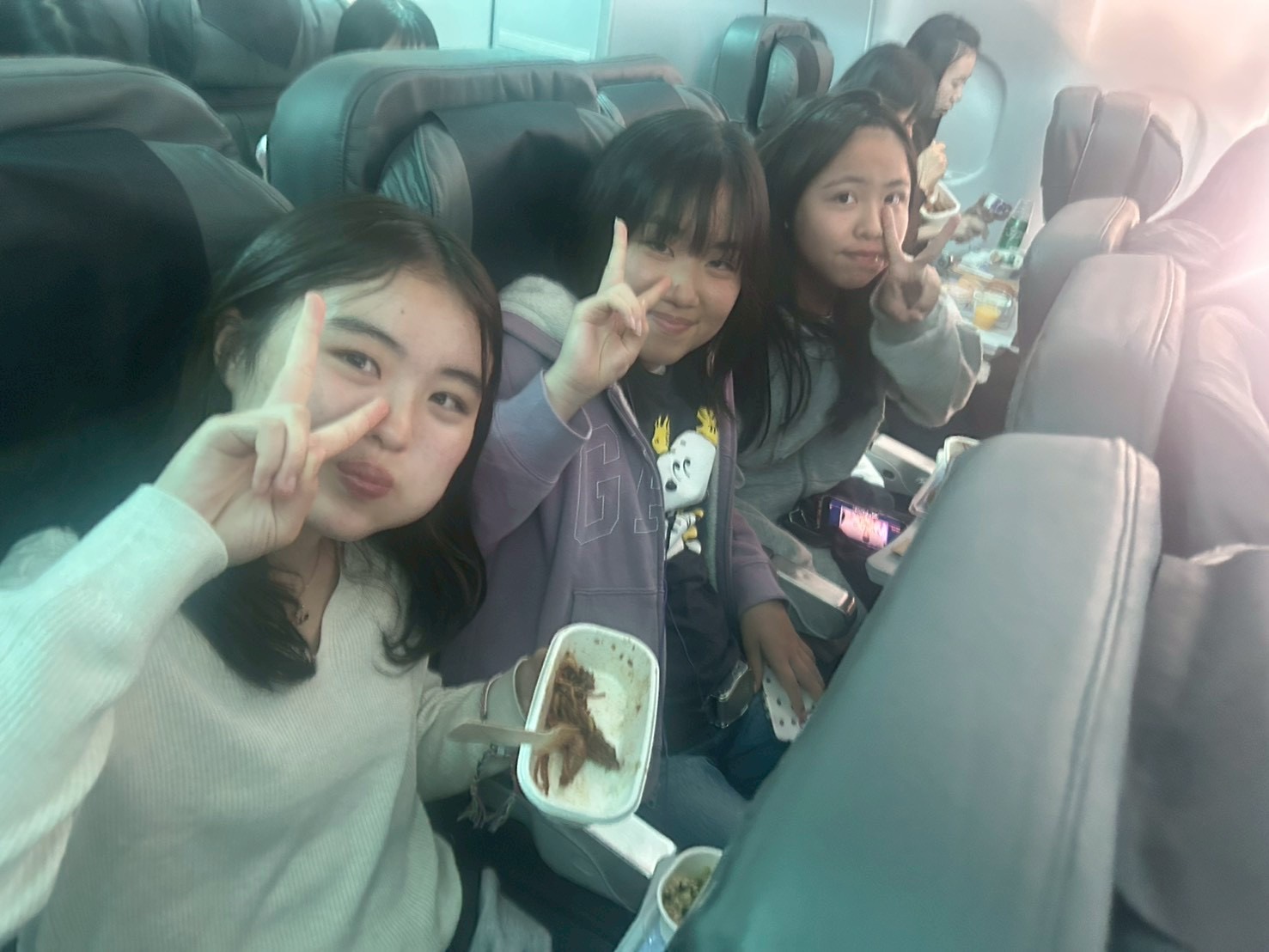 オークランドから成田までは約10時間以上に及ぶロングフライト。日本からNZに出発する際に一度同じフライトを経験しているので、前回から持ち物がパワーアップ、NZで買った便利なお土産をそのまま機内で使用している者などが見受けられました。離陸時は名残惜しそうに飛行機の窓からニュージーランドの地を身を乗り出して眺める生徒たち。たくさんの経験をして学びを得たこの国、出会った人々に感謝しながら大好きな母国に向けてテイクオフ。