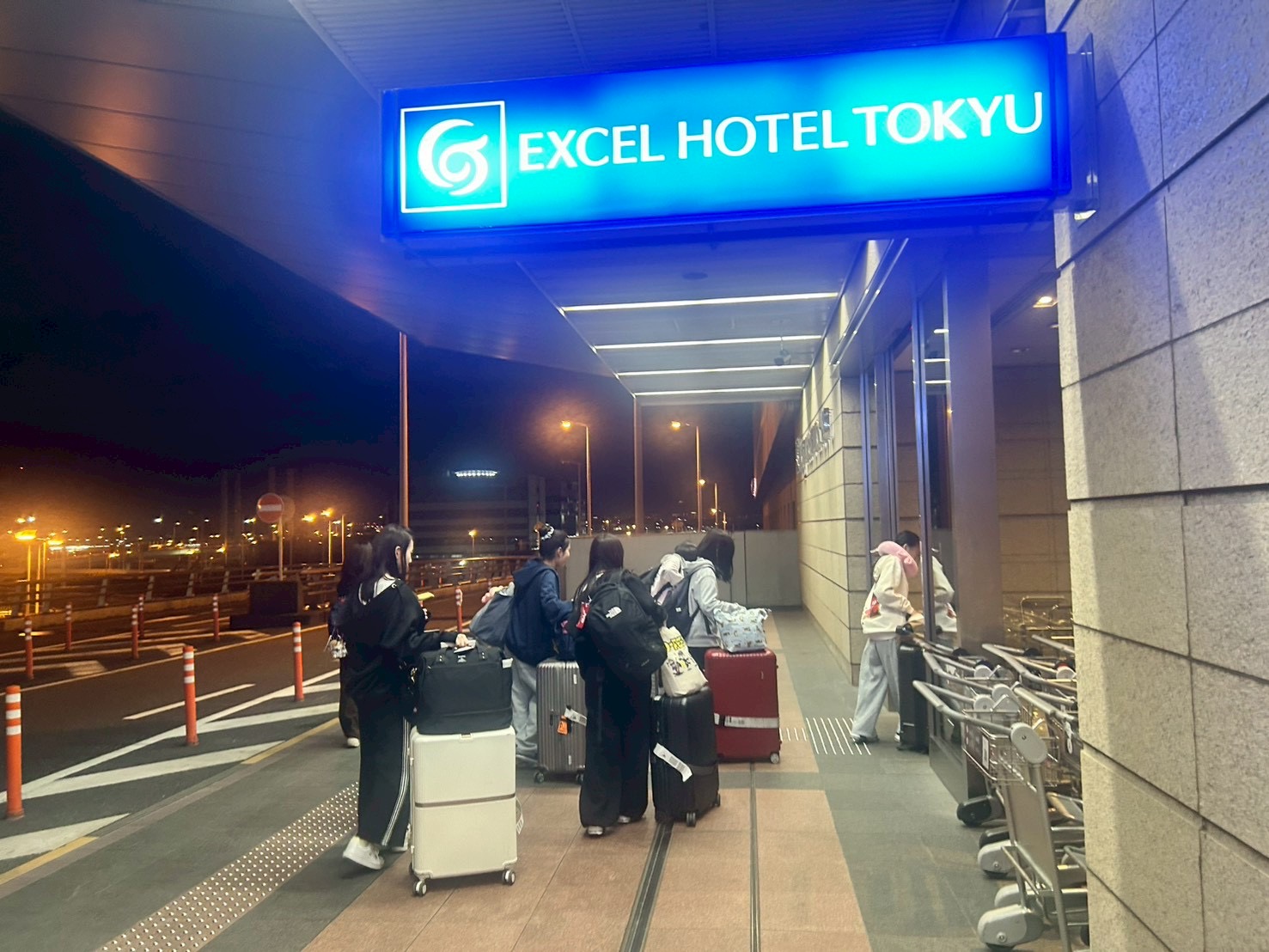 到着後は成田空港からバスで羽田空港に移動。約1時間半の移動で途中は車窓から東京のお台場や東京タワー、東京ディズニーランドなどを短時間ですが横目に見ることが出来ました。空港近くの羽田エクセルホテル東急にチェックイン、各自軽食を受け取って今日は早めに点呼・消灯。翌日の羽田から伊丹空港への昼のフライトに備えます。