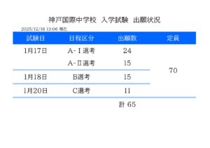 ホームニュース 中学入試出願状況(12/16) 2025年12月16日 SHARE ツイート シェア はてブ LINE Pocket コメントを残す コメントをキャンセルメールアドレスが公開されることはありません。 ※ が付いている欄は必須項目ですコメント ※ 名前 ※ メール ※ サイト 次回のコメントで使用するためブラウザーに自分の名前、メールアドレス、サイトを保存する。